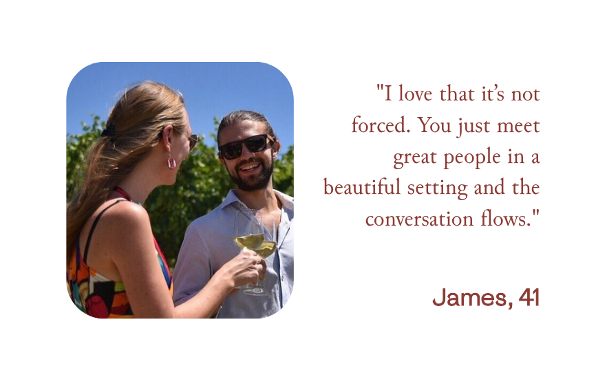 A curated social experience in the Yarra Valley wine region, for interesting people who want real, human connection.